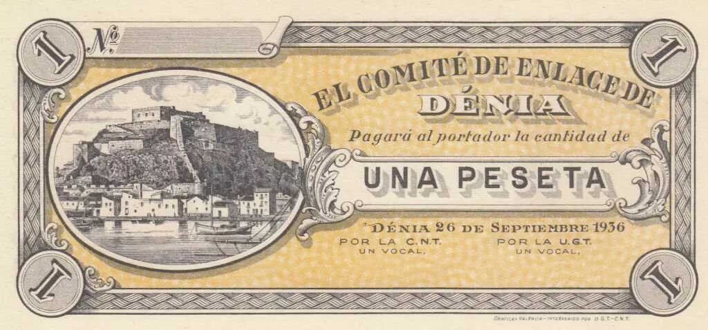Banknote Spain 1 Peseta 1936 - El comité de enlace de Dénia