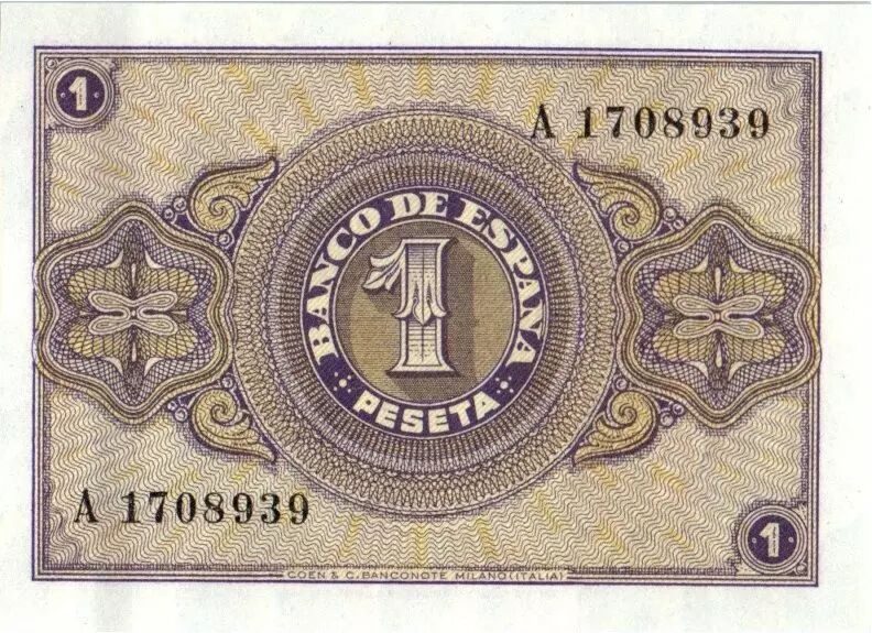 Home > World Banknotes > European Banknotes > Spain > Spain 1 Peseta - Arms - Burgos - 1937