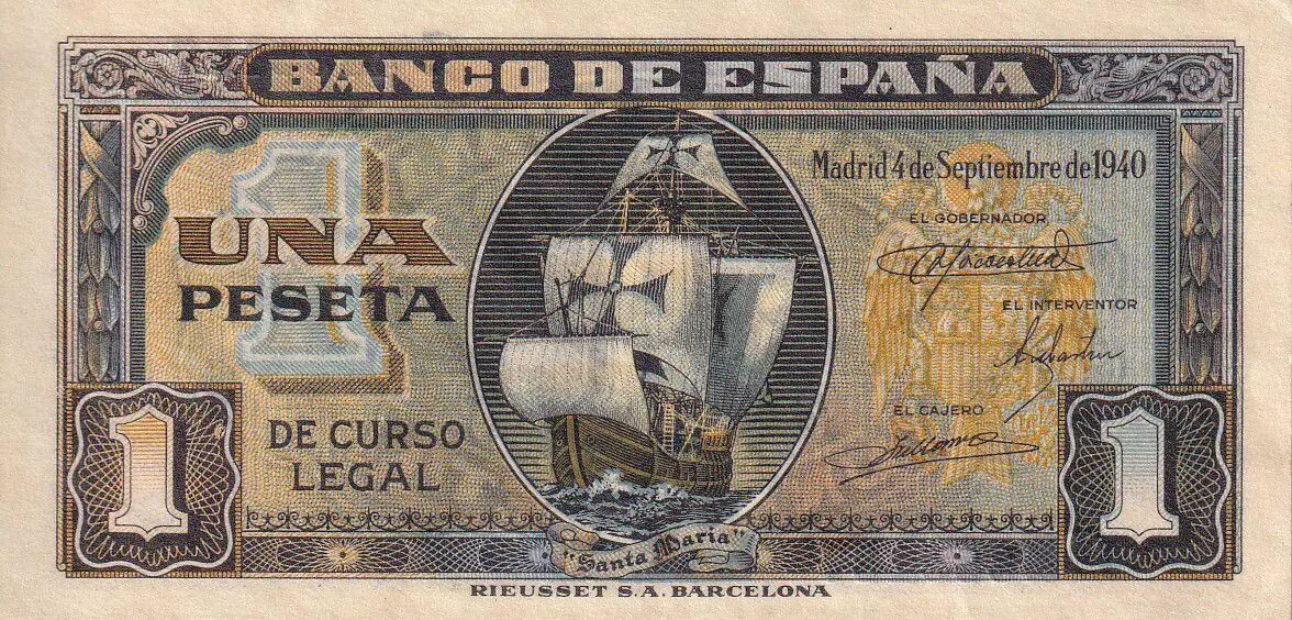 Banknote Spain 1 Peseta - Santa Maria - Serial C - 1940 - P.122