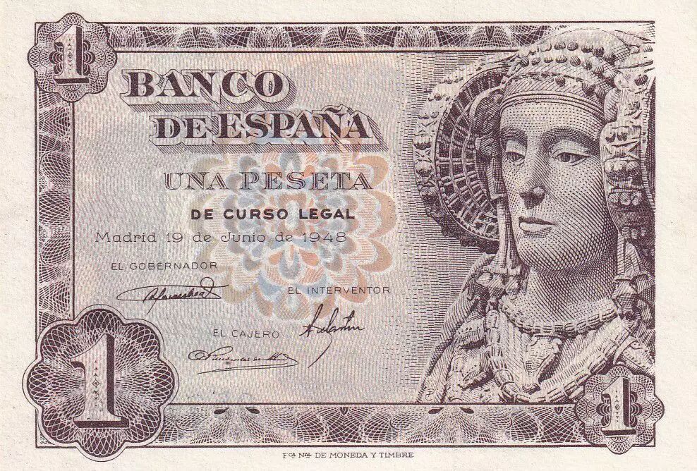 Banknote Spain 1 Peseta - Woman of Elche - 1948 - Without Serial - P.135