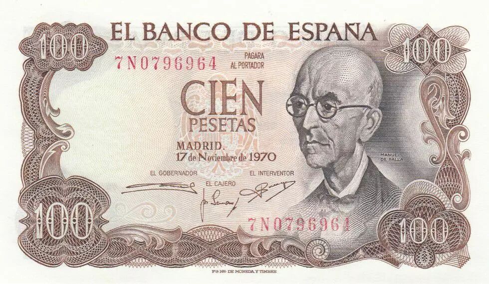 Home > World Banknotes > European Banknotes > Spain > Spain 100 Pesetas 1970 - Manuel de Falla