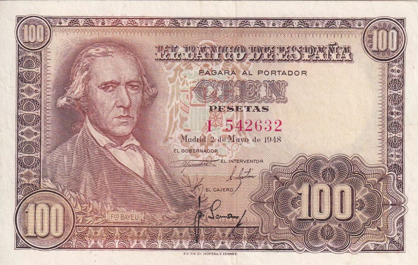 Banknote Spain 100 Pesetas - Bayeu - 1948 - P.137