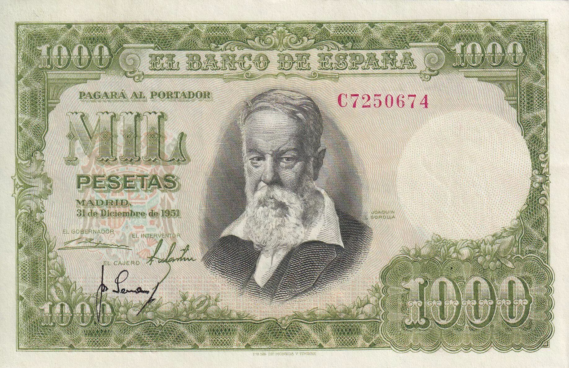 Home > > Spain 1000 Pesetas - Joaquin Sorolla - 1951 - P.143