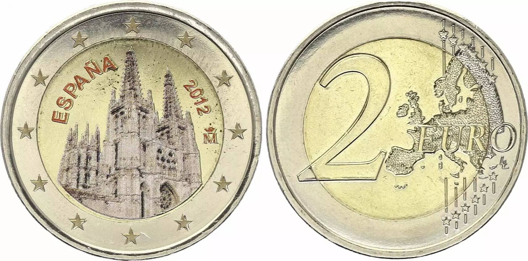 Coin Spain 2 Euros - Cathedral of Burgos - Colorised - 2012