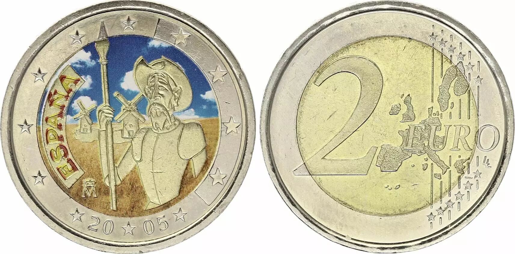 Coin Spain 2 Euros - Don Quixote - Colorised - 2005