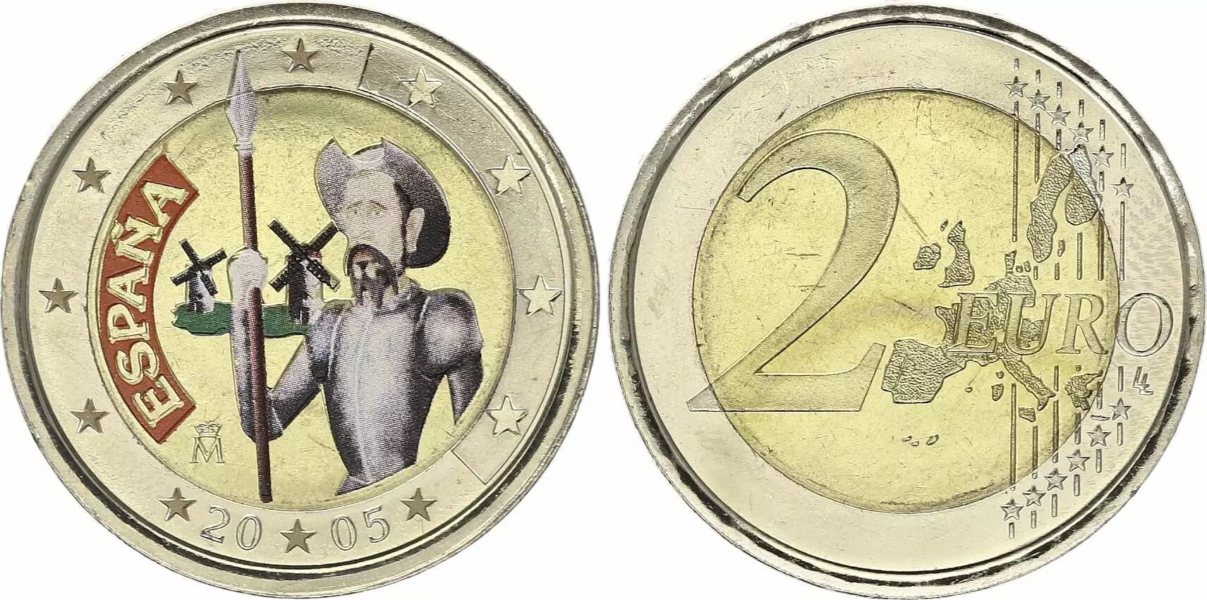 Coin Spain 2 Euros - Don Quixote - Colorised - 2005
