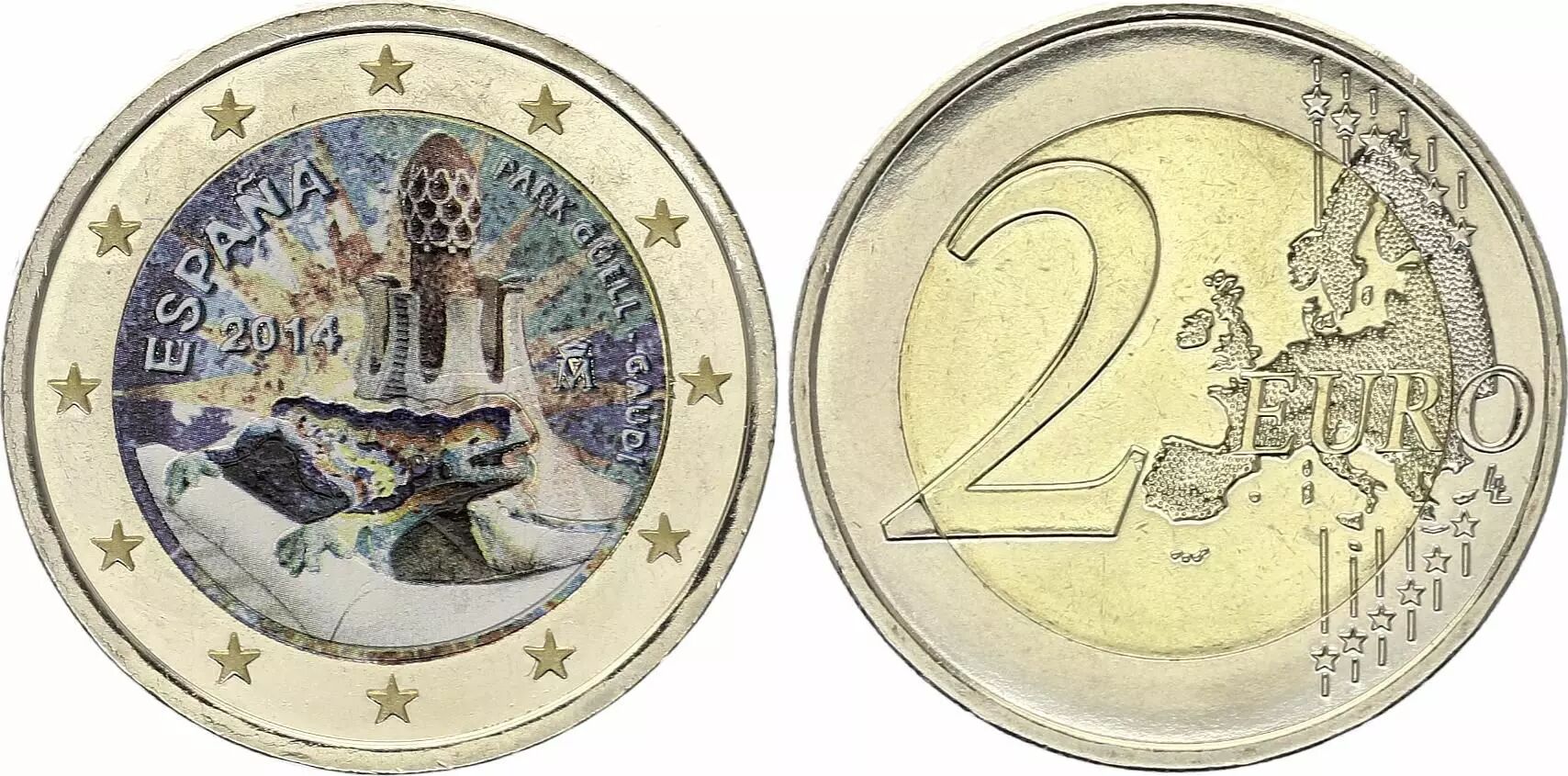 Home > World Coins > European Currencies > Spain > Spain 2 Euros - Guell Parc - Colorised - 2014