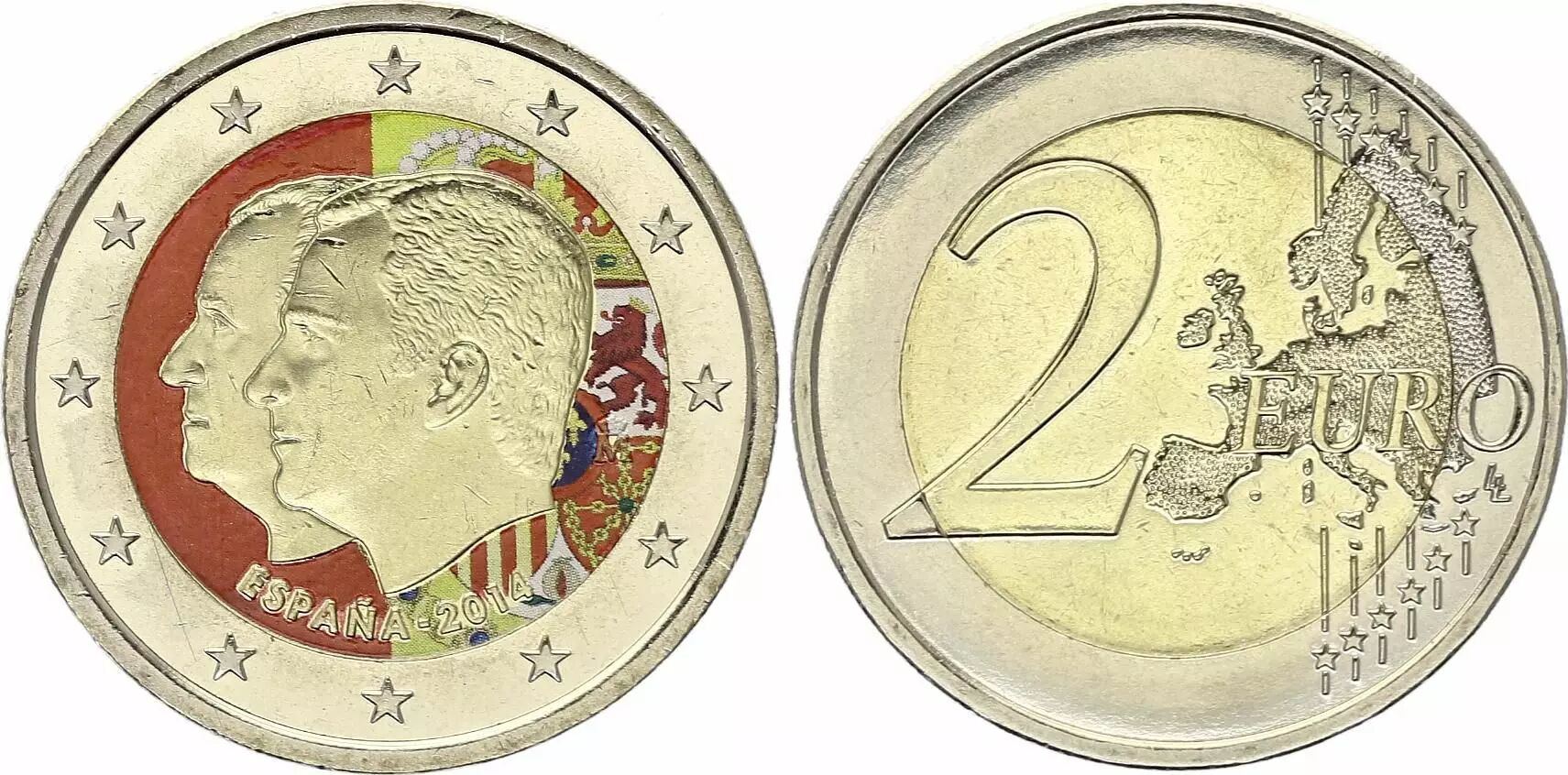 Coin Spain 2 Euros - Philip VI King of Spain - Colorised - 2014
