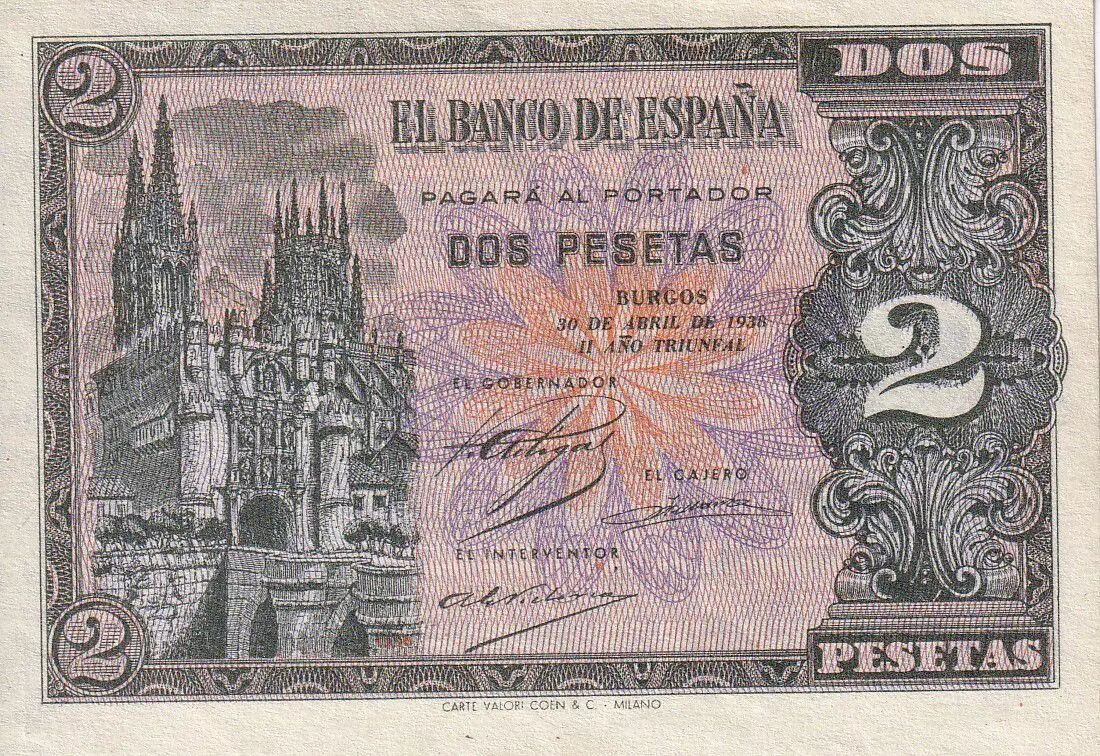 Home > World Banknotes > European Banknotes > Spain > Spain 2 Pesetas - Gothic church of Burgos - 1938 - P.109