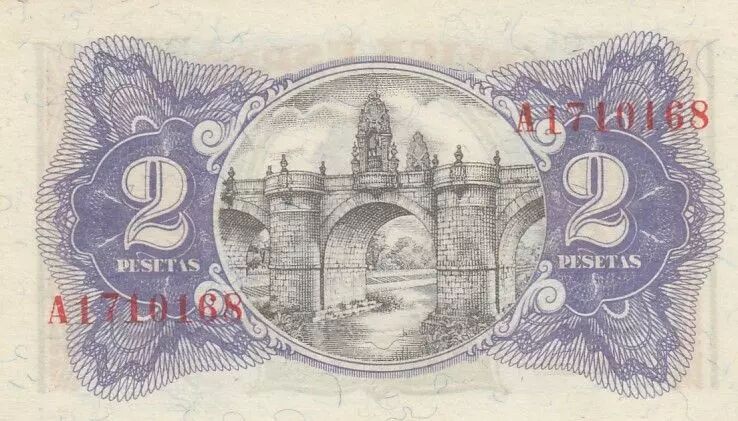 Home > World Banknotes > European Banknotes > Spain > Spain 2 Pesetas - Woman - Toledo bridge - 1938 - P.95