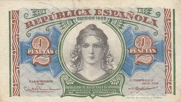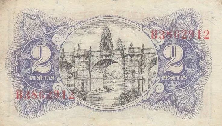 Home > > Spain 2 Pesetas - Woman - Toledo bridge - 1938 - P.95
