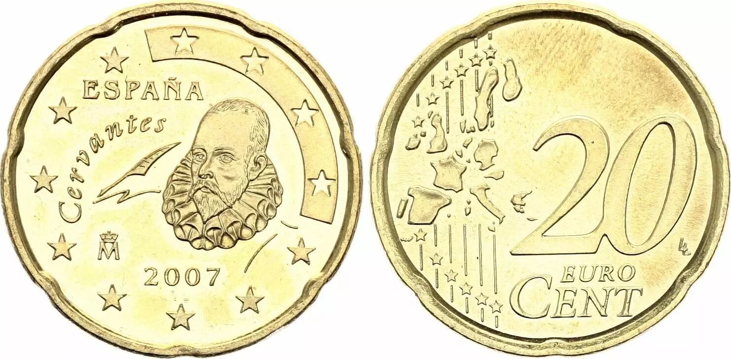 Euro coins, although standardized in their value and use, have national peculiarities that reflect the identity and history of each issuing country. The 2007 Spanish 20-cent coin is a concrete example of this, with its own design and technical characteristics.