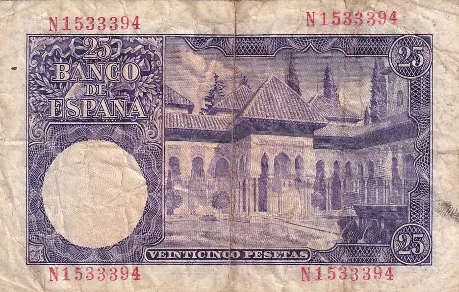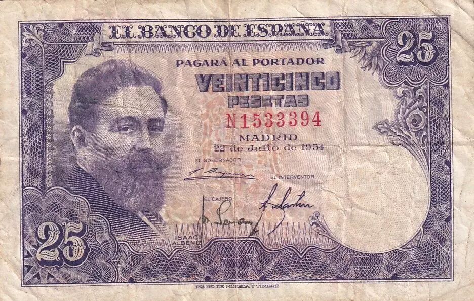 Banknote Spain 25 Pesetas Isaac Albeniz - Sarial N - 1954