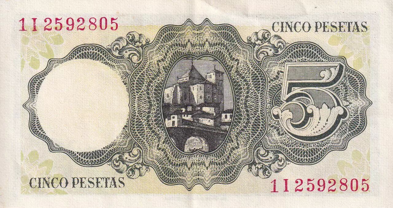 Banknote Spain 5 Pestas - Jaime Balmes - 1951 - Serial 1I - P.140