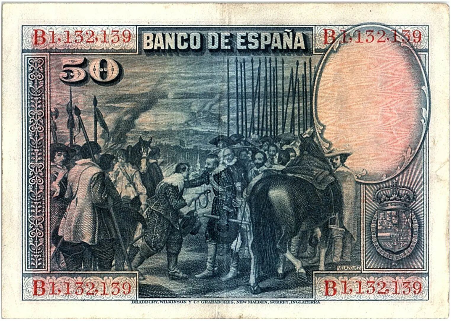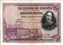 Home > World Banknotes > European Banknotes > Spain > Spain 50 Pesetas - D. Vélasquez - 1928 - Serial B - VF - P.75