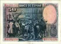 Banknote Spain 50 Pesetas - D. Vélasquez - 1928 - Serial B - VF - P.75