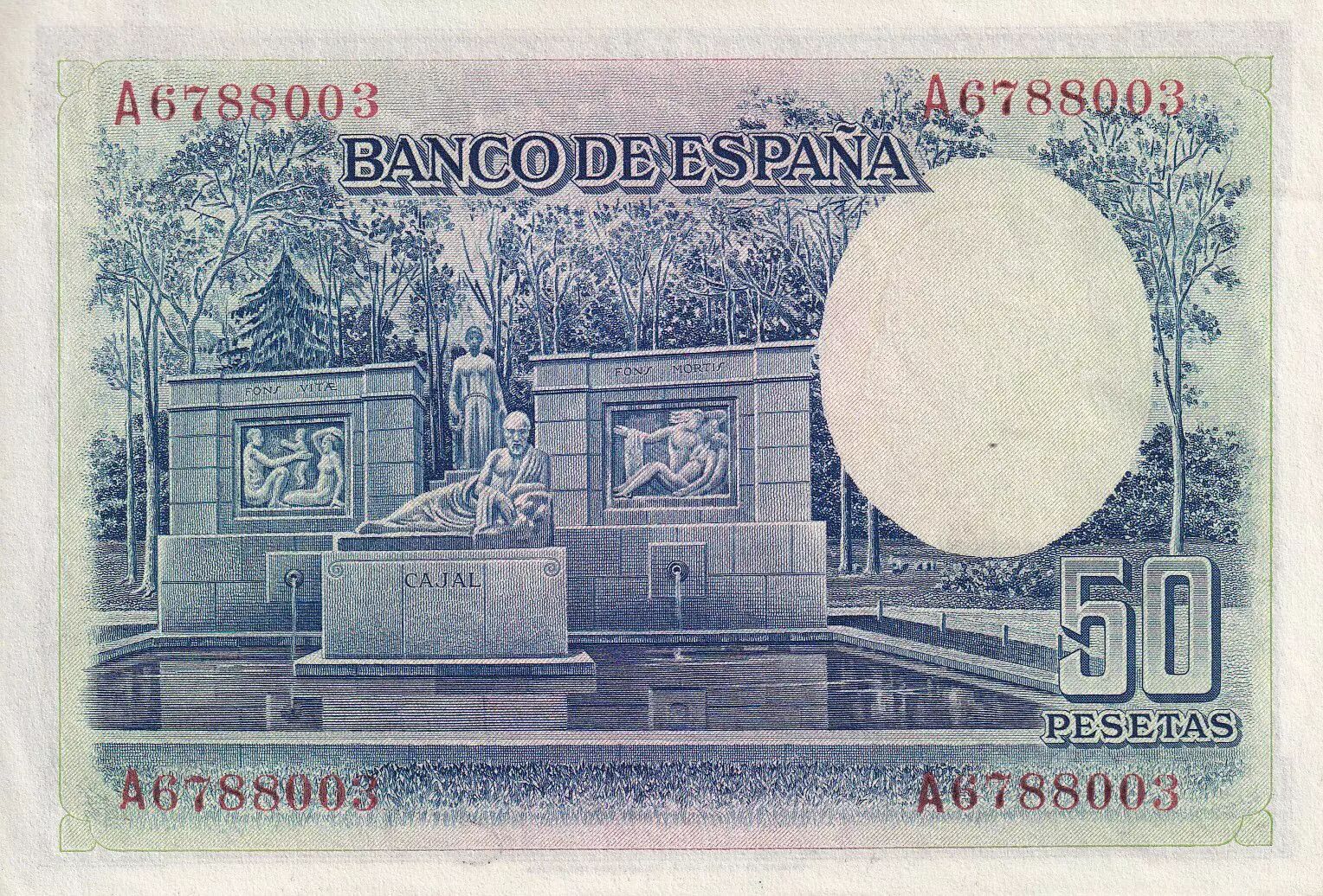 Banknote Spain 50 Pesetas - Santiago Ramon y Cajal - 1935 - Serial A - P.88b