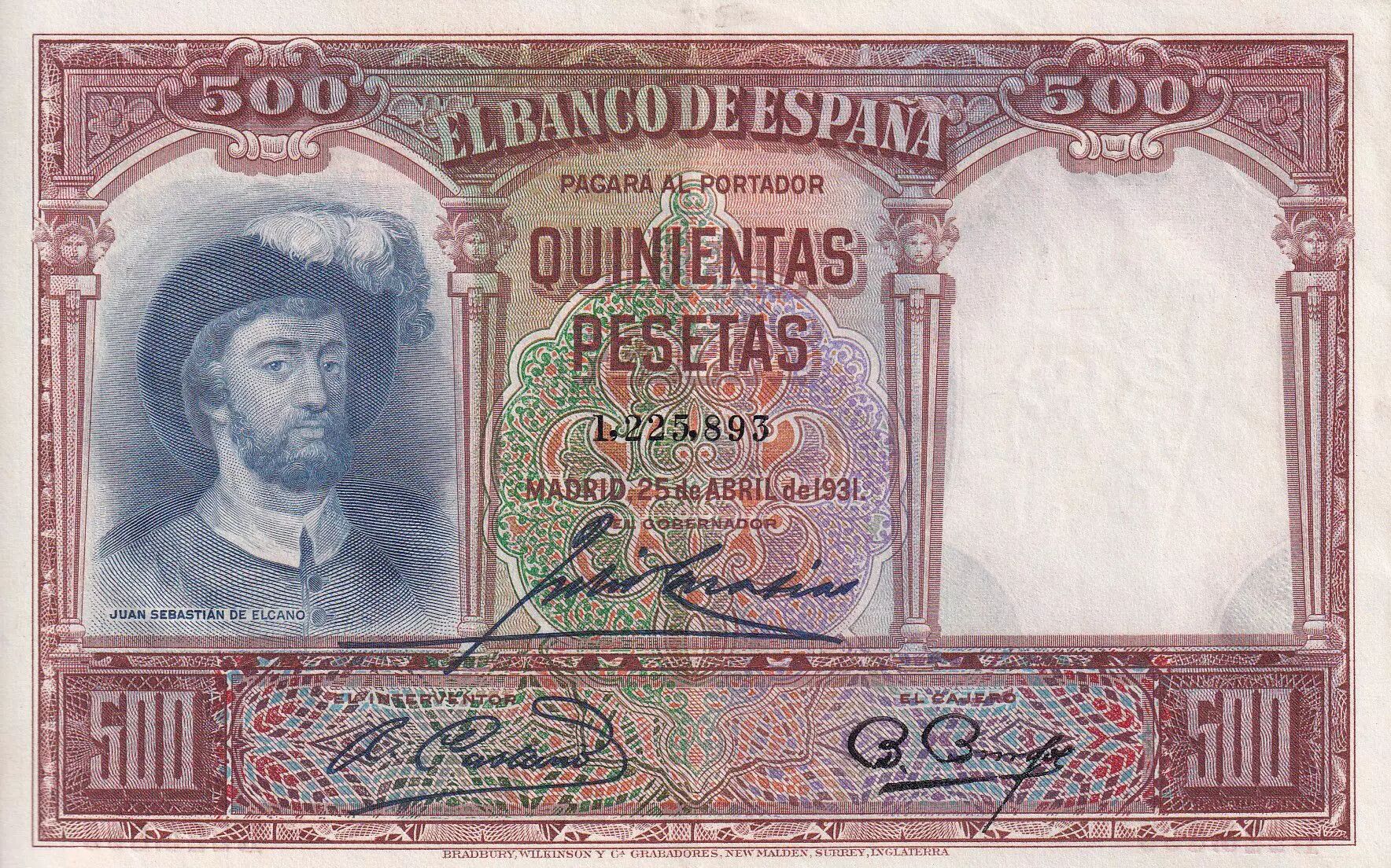 Banknote Spain 500 Pesetas - J. S. de Elcano - 1931 - P.85