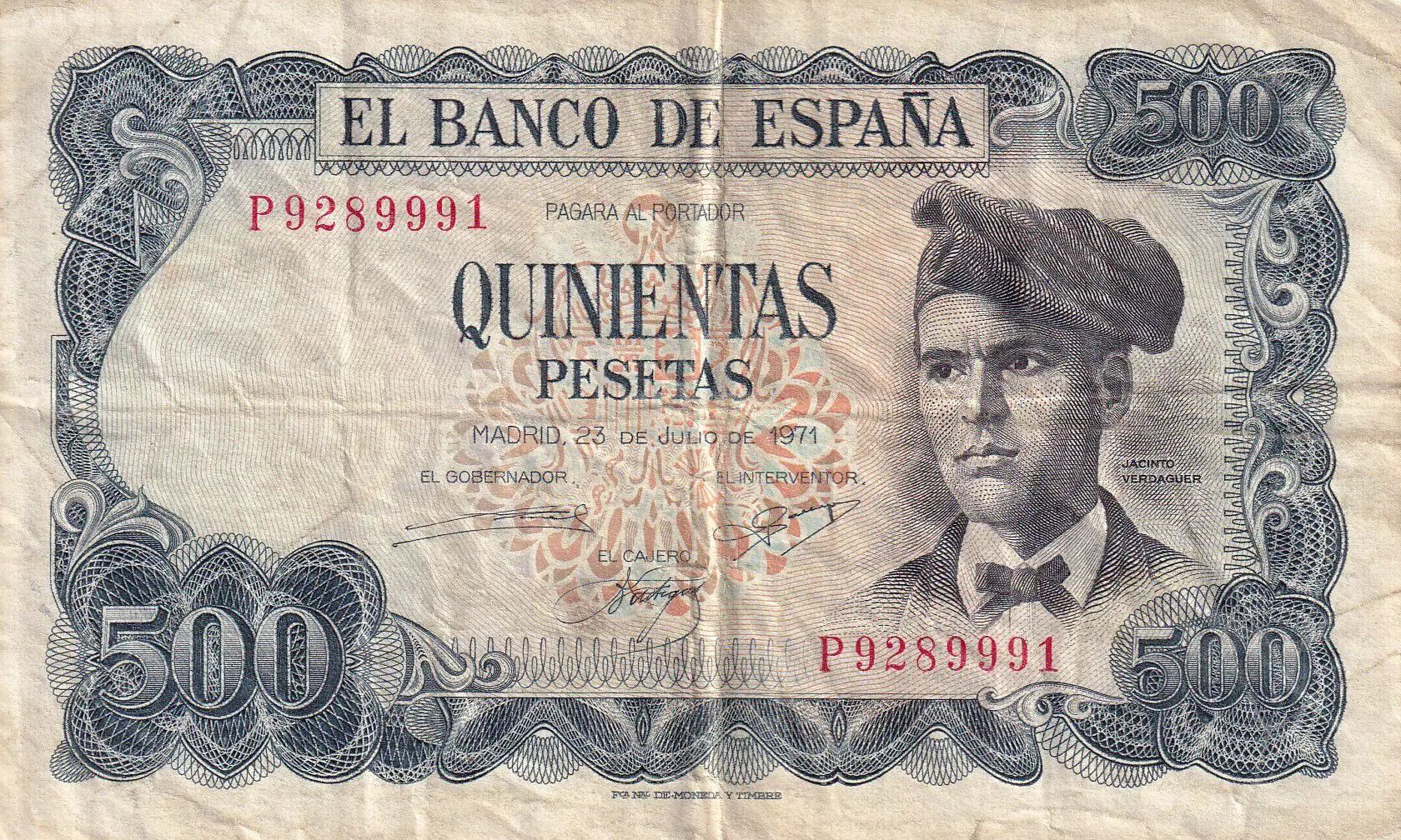 Home > > Spain 500 Pesetas - Jacinto Verdaguer - Landscape - 1971 - Letter P - P.153
