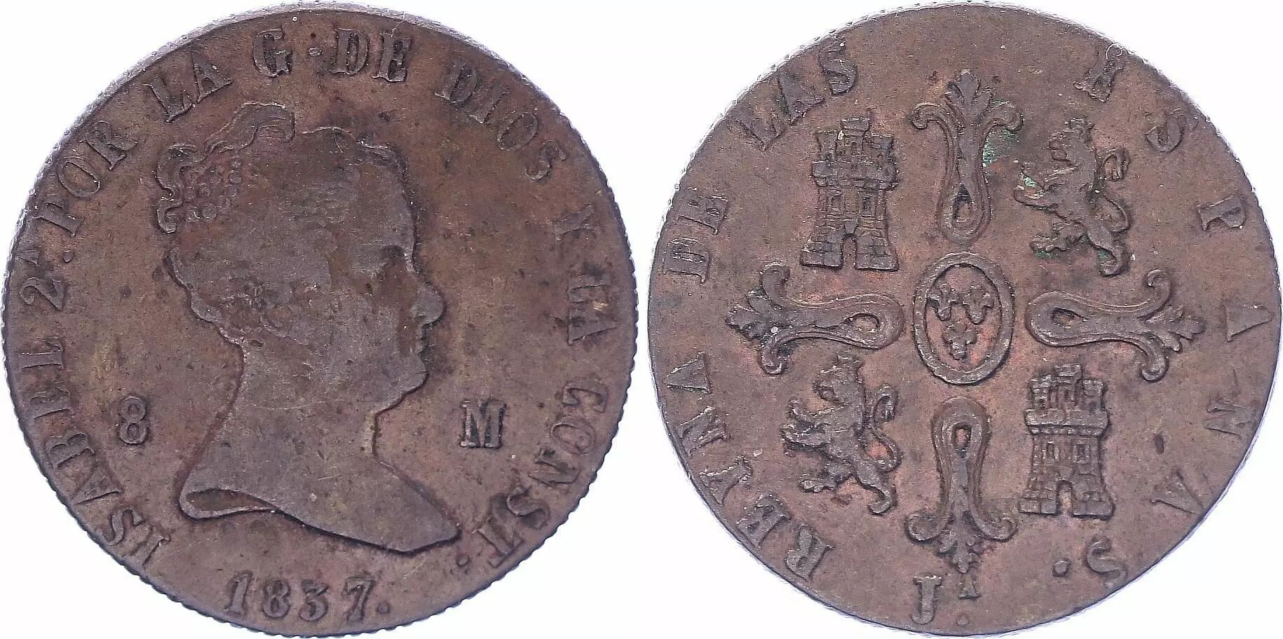 Home > World Coins > European Currencies > Spain > Spain 8 Maravedis - Isabel II - 1837 - KM.531