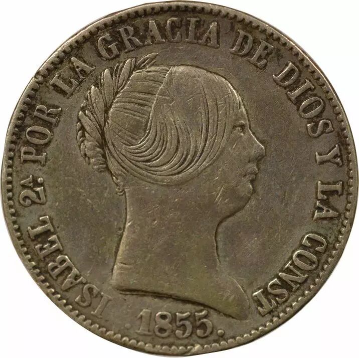 Coin Spain Isabel II - 10 Silver Reales - 1855 Barcelona