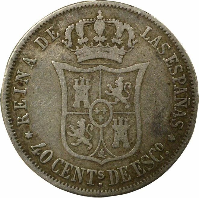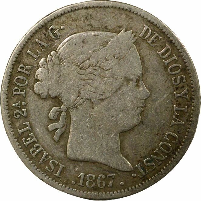 Home > World Coins > European Currencies > Spain > Spain Isabel II - 40 Silver Centimos - 1867 Madrid