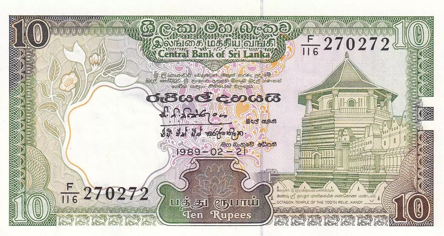 Billet Sri-Lanka 10 Rupees, Temple - Sanctuaire - 1989