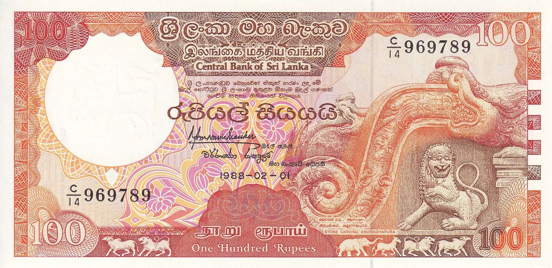 Accueil > Archivage > Sri-Lanka 100 Rupees - Lion - Parlement - 1988 - P.99b