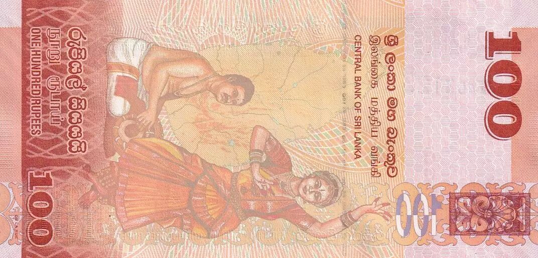 Ce billet de banque, d'une valeur nominale de 100 Rupees, est émis par le Sri Lanka. Datant de l'année 2021, il appartient à la série "Développement et prospérité des danseurs Sri Lankais".