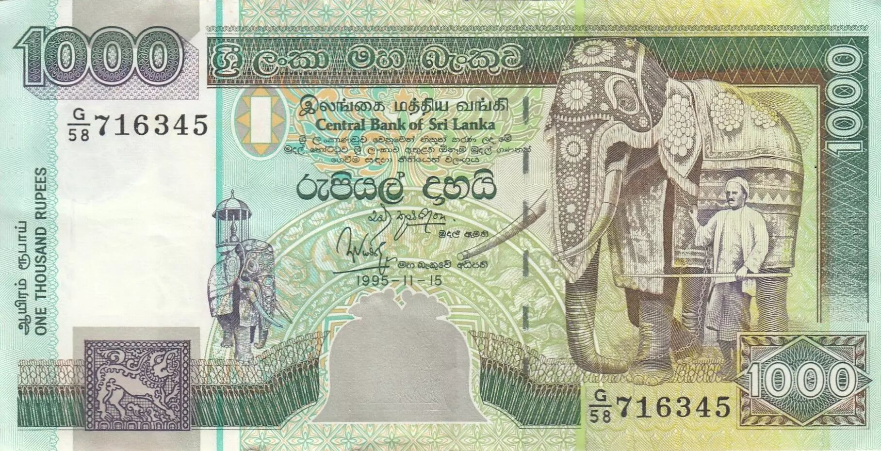 Home > > Sri Lanka 1000 Rupees - Elephant - Peacock - 15-11-1995 - Serial G