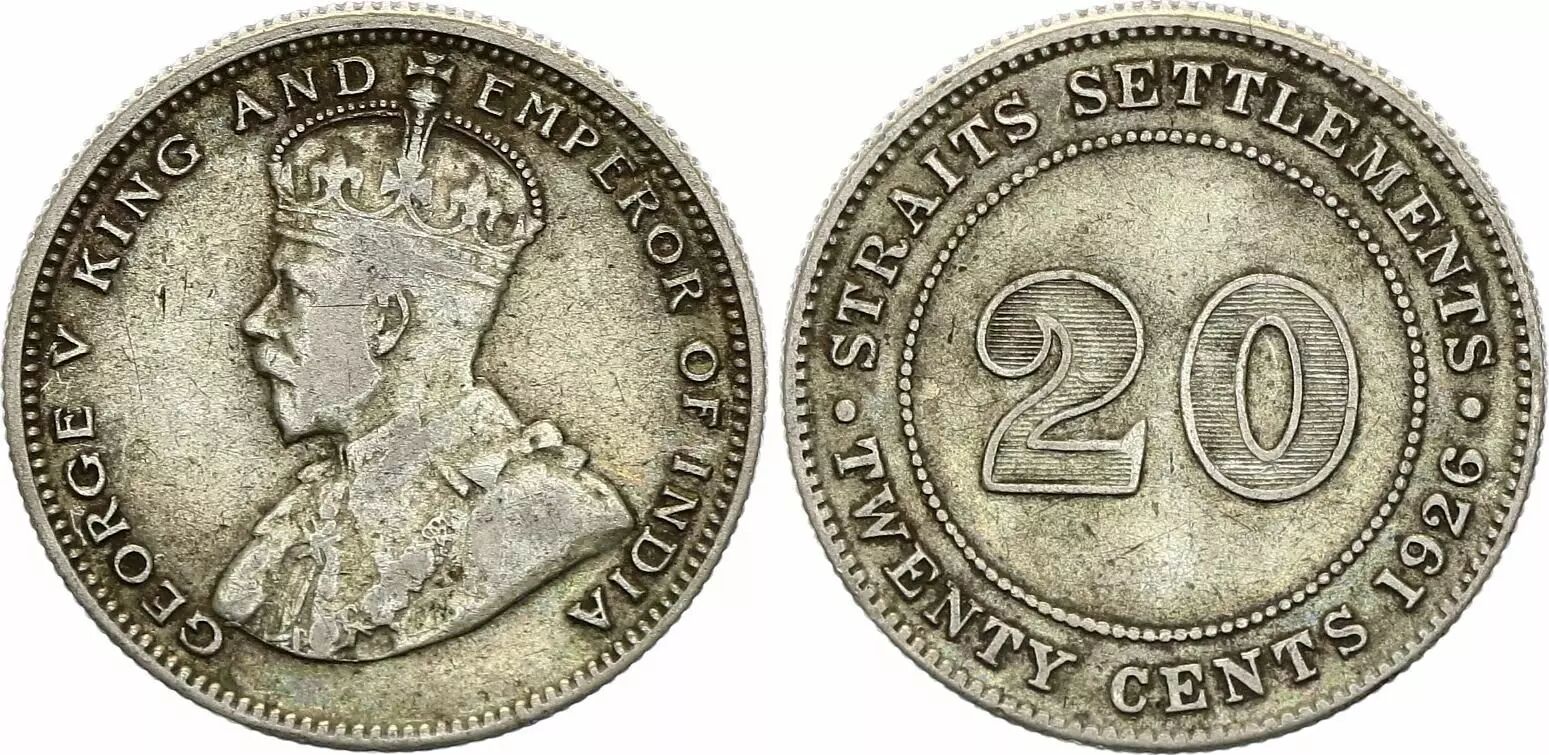 Pièce Straits Settlements 20 Cent George V - 1926 - Argent