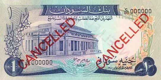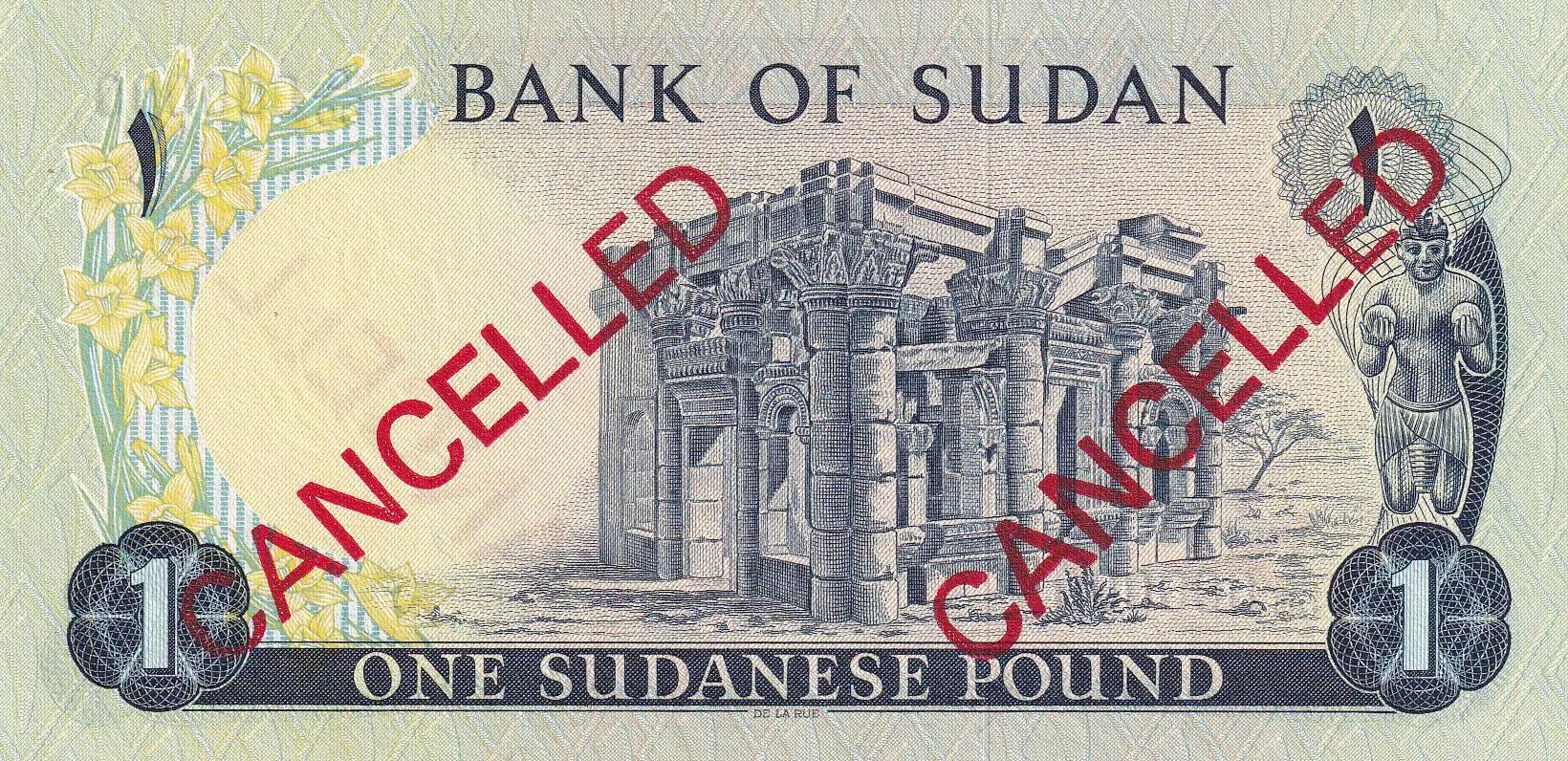 Home > World Banknotes > African Banknotes > Sudan > Sudan 1 Pound - Central bank bldg - Temple - Specimen - ND (1970) - P.13s