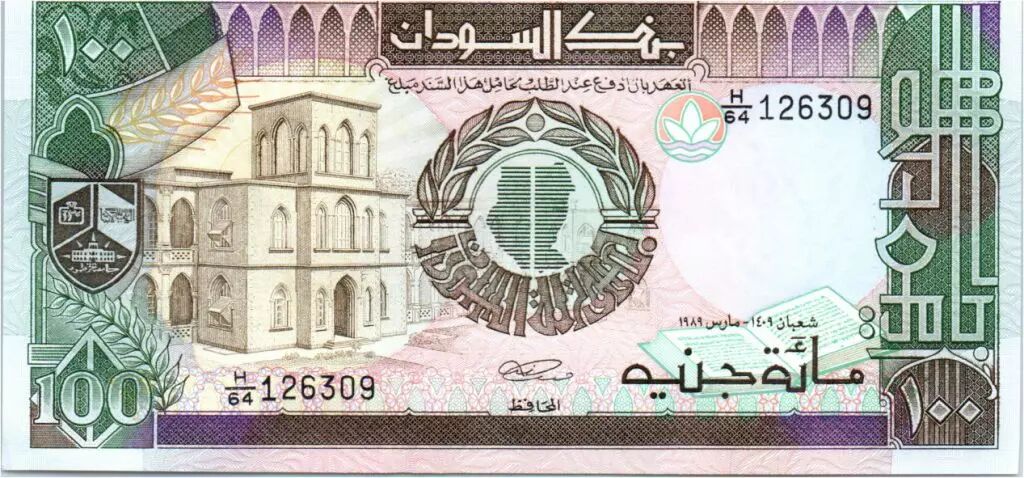 Banknote Sudan 100 Pound Khartoum University - Central Bank - 1989