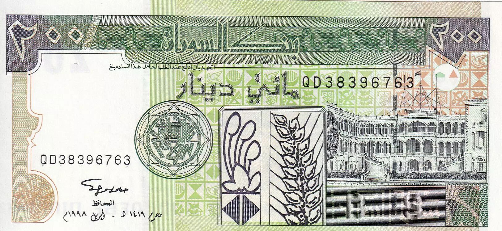 Banknote Sudan 200 Dinars - Building - Palms - 1998 - P.57b