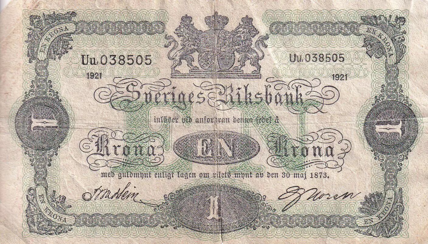 Accueil > Archivage > Suède 1 Krona - Vert - 1921 - Série Uu - P.32h