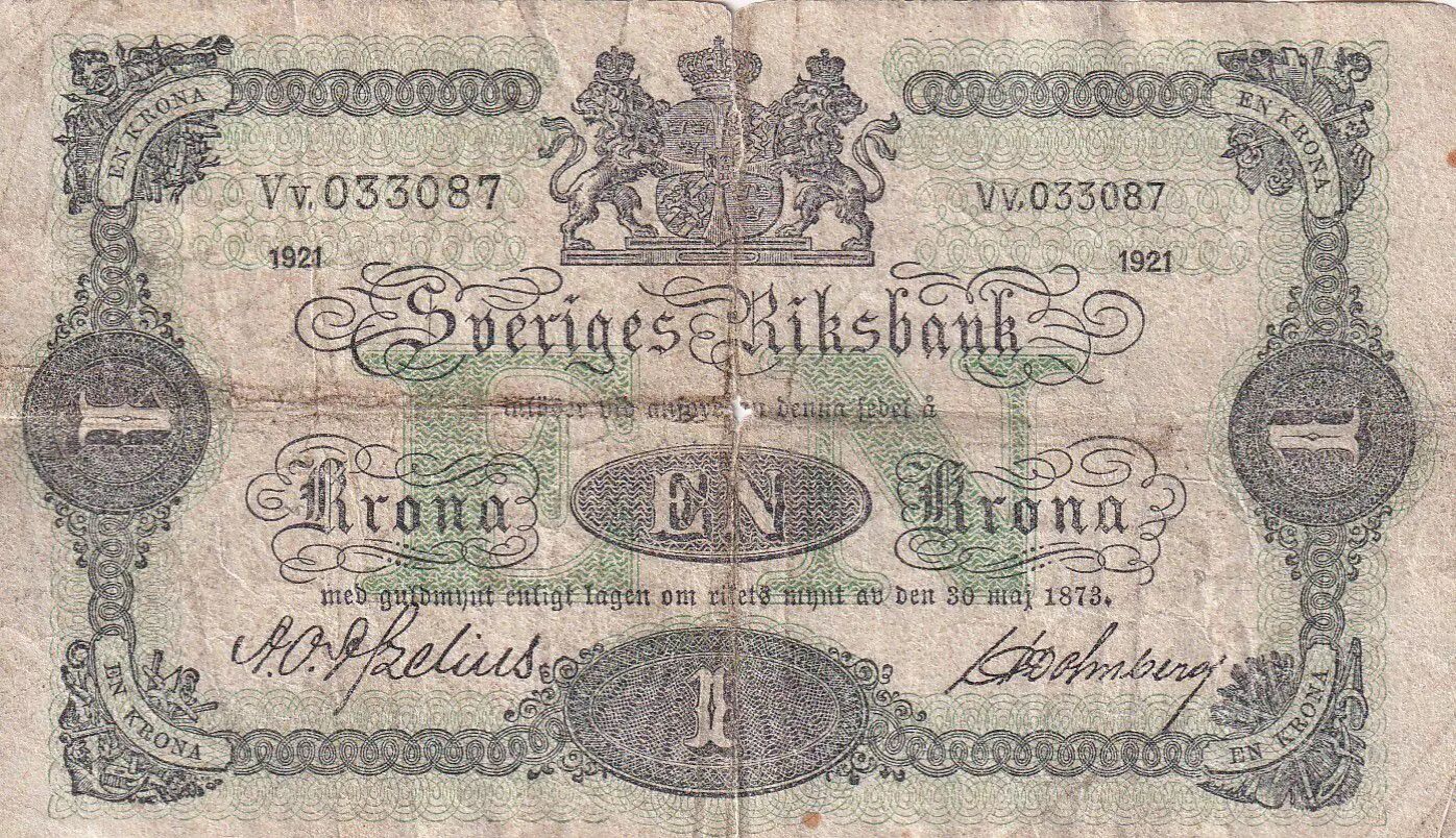 Billet Suède 1 Krona - Vert - 1921 - Série Vv - P.32h