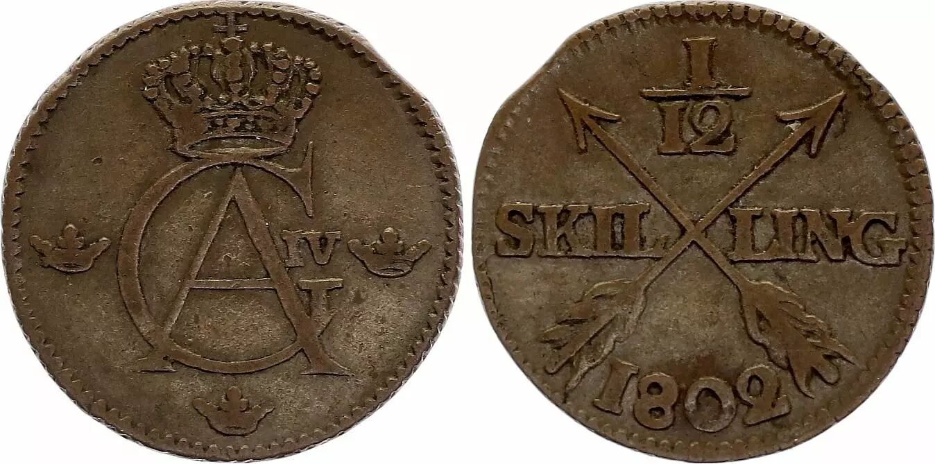 Pièce Suède 1/12 skilling - Gustaf IV Adolf - 1802