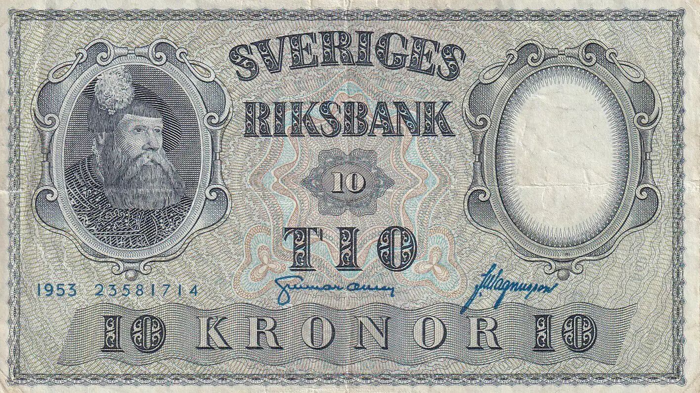 Billet Suède 10 Kronor - Roi Gustaf Vasa - 1953 - P.43a