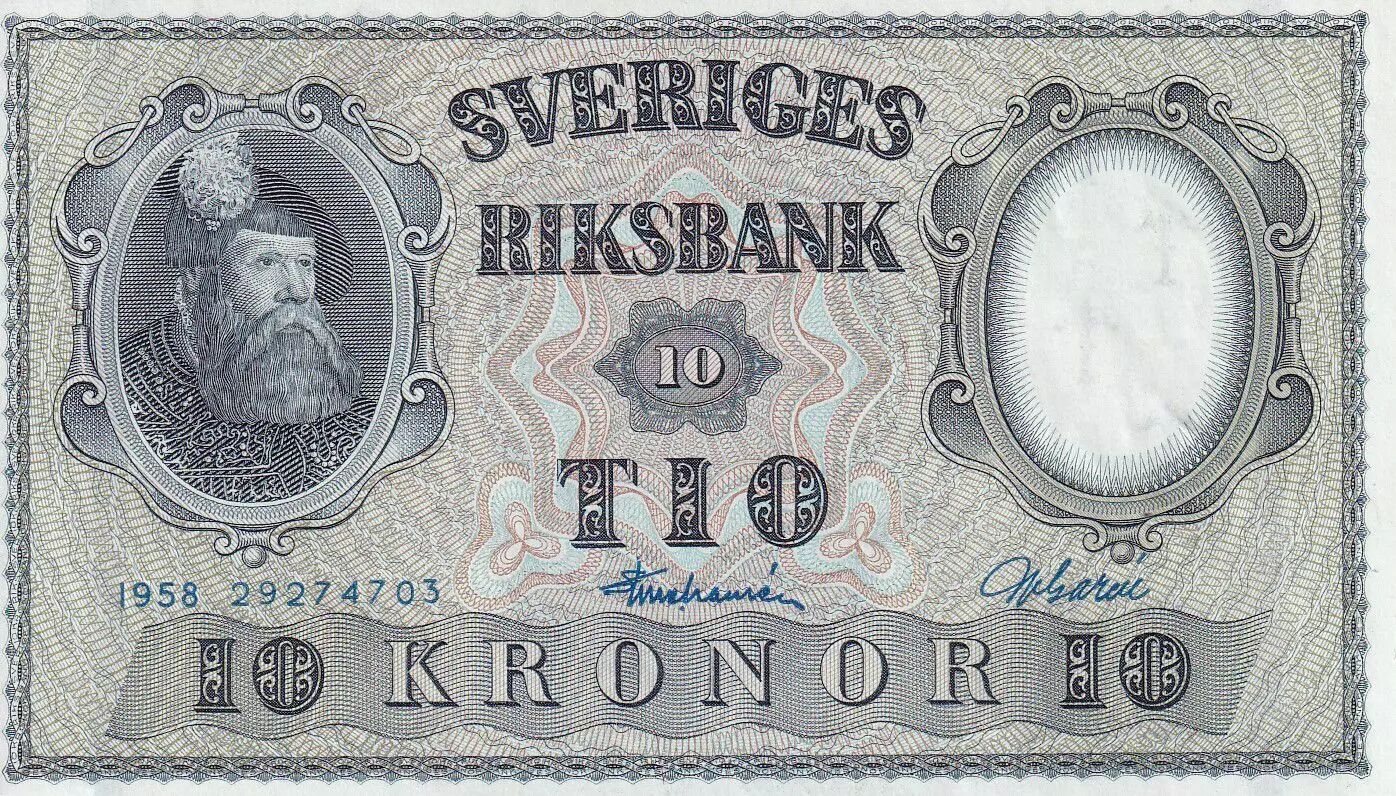 Accueil > Archivage > Suède 10 Kronor - Roi Gustaf Vasa - 1958 - NEUF - P.43c