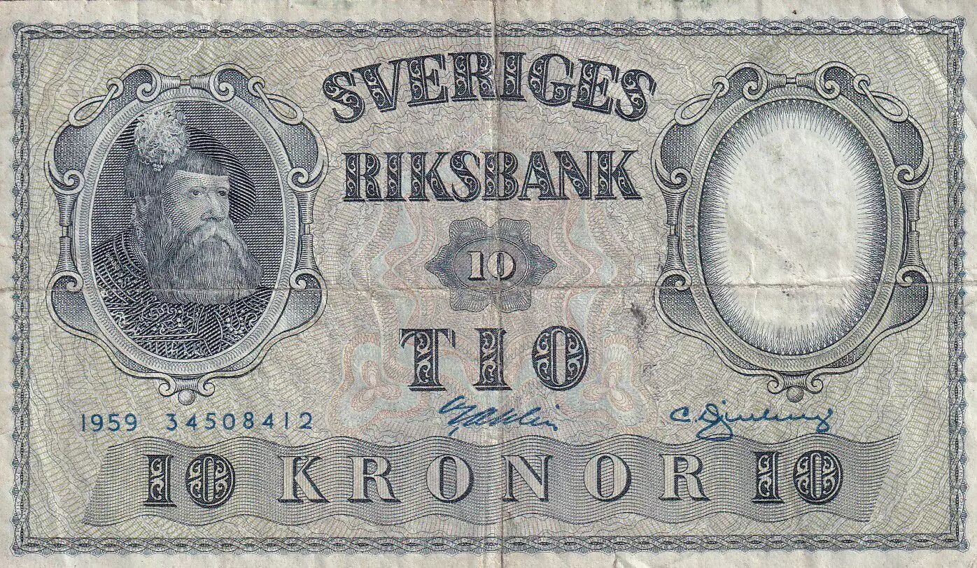 Billet Suède 10 Kronor - Roi Gustaf Vasa - 1959 - P.43g
