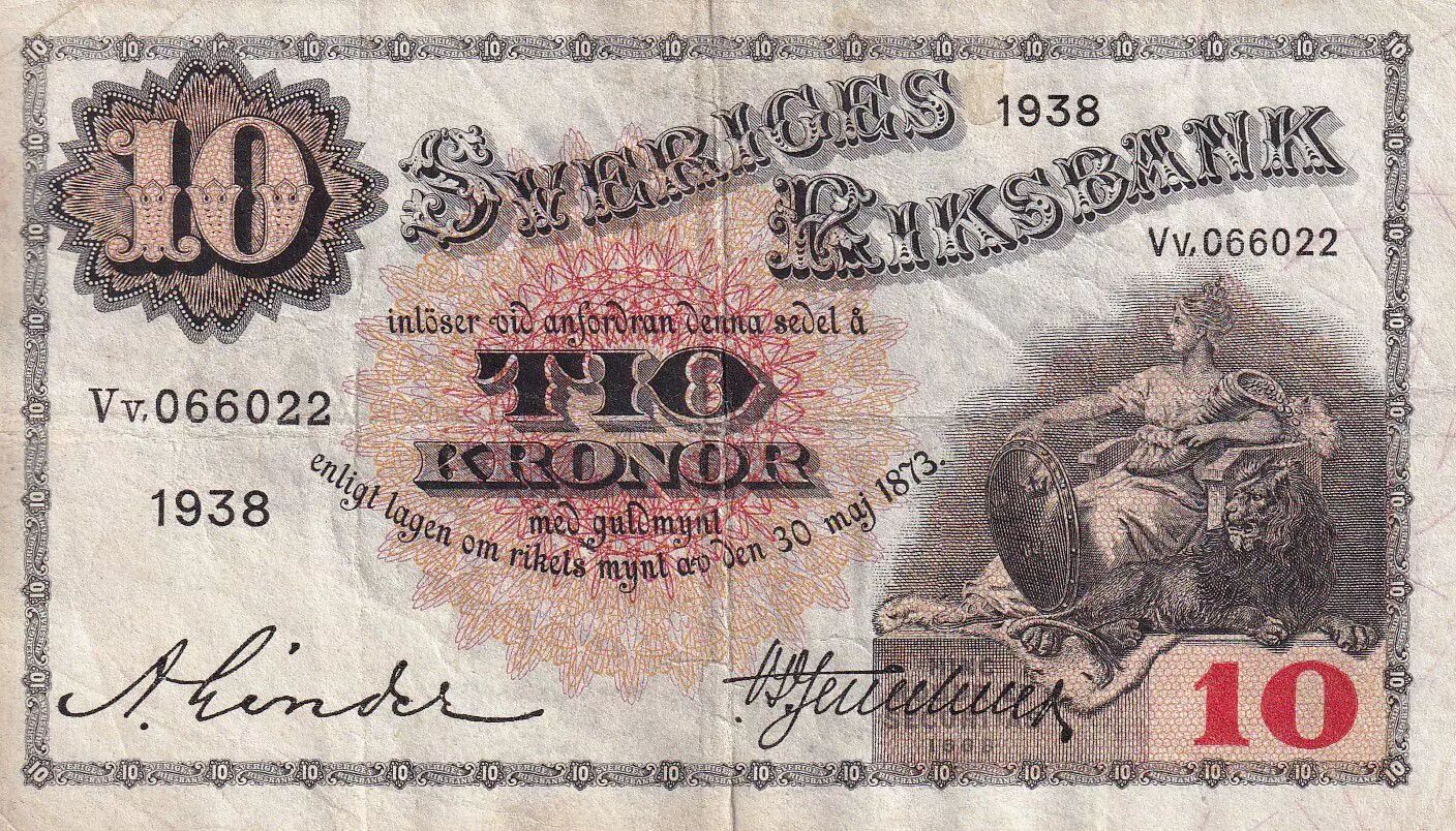 Accueil > Archivage > Suède 10 Kronor - Svea - Gustav Vasa - 1938 - Série Vv - P.34u