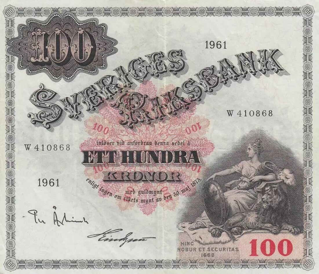 Accueil > Billets du Monde > Billets d'Europe > Suède > Suède 100 Kronor - Svea - Gustav Vasa - 1961 - Série W - P.48c