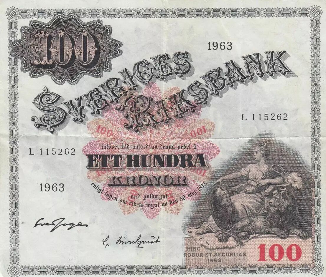 Accueil > Archivage > Suède 100 Kronor - Svea - Gustav Vasa - 1963 - Série L - P.48e