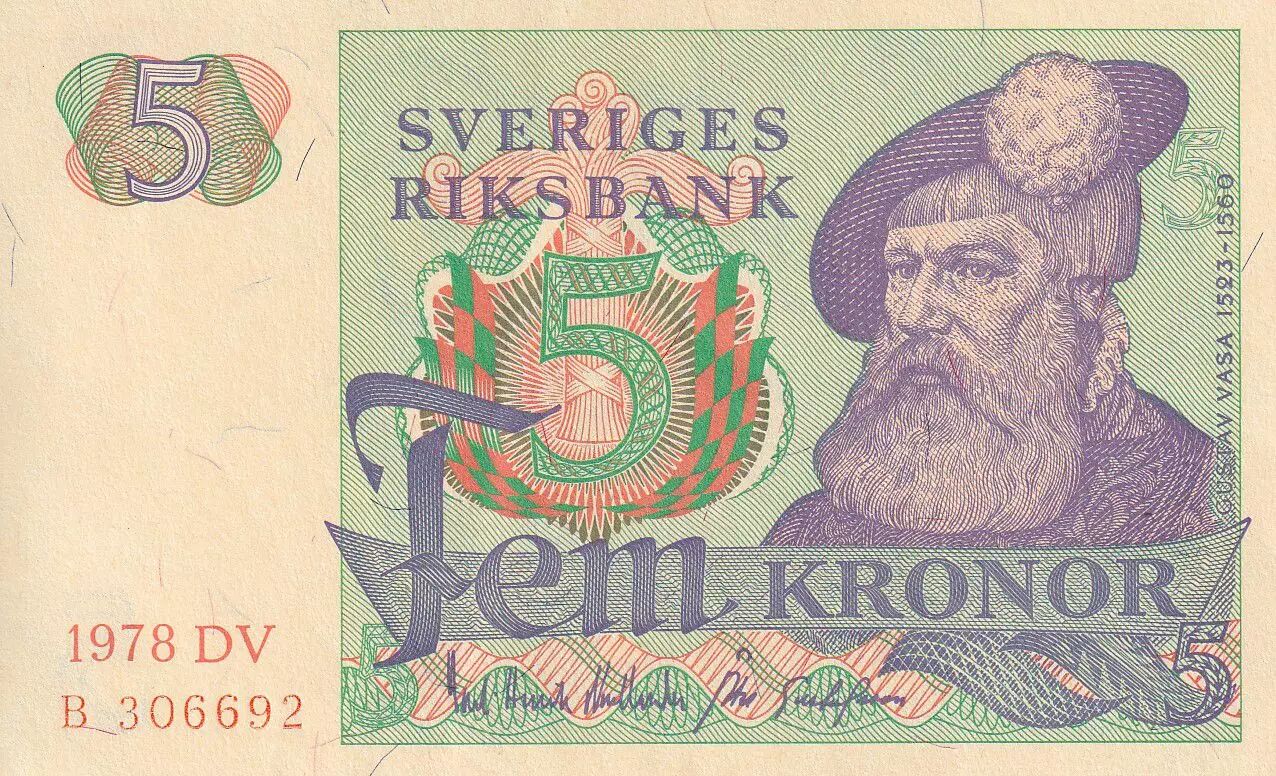 Billet Suède 5 Kronor - Gustav Vasa - 1978 - Série DV - P.51d