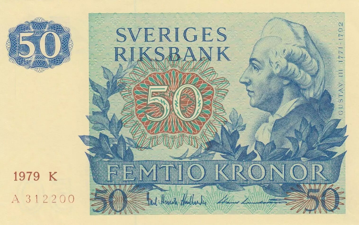 Ce billet de banque est une coupure de 50 kronor émise par la Sveriges Riksbank, la banque centrale de Suède, en 1979. Il fait partie d'une série spécifique identifiée par le code "C 535".