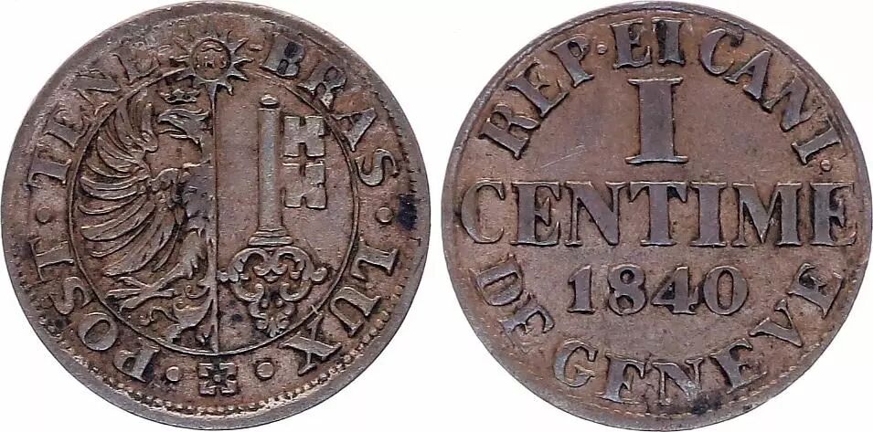 Pièce Suisse 1 Centime, Canton de Genève - 1840