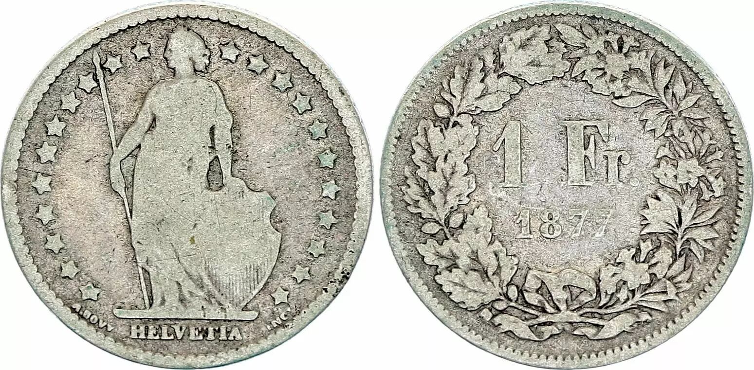 Pièce Suisse 1 Franc Helvetia - 1877 - B Bern - Argent