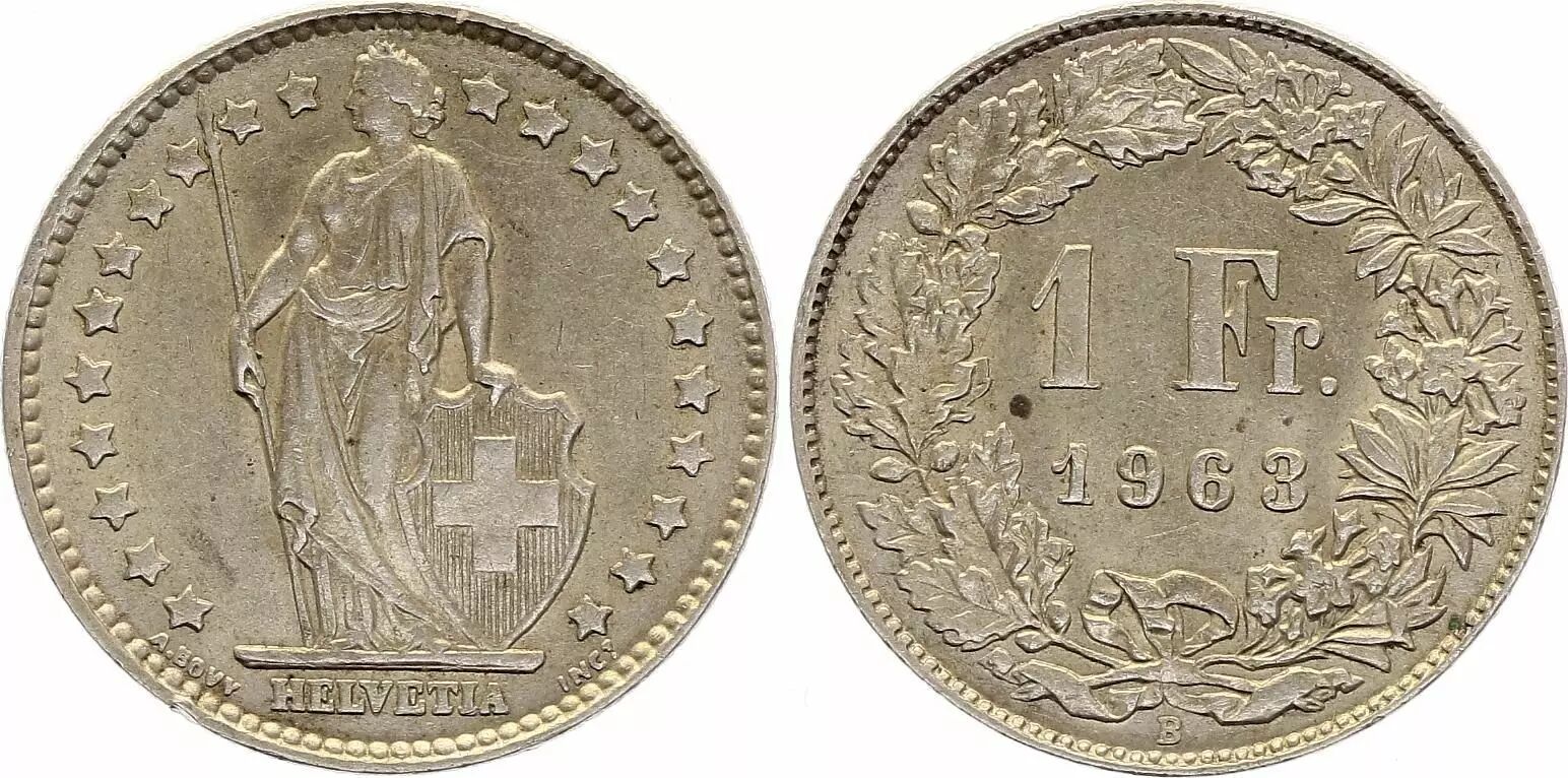 Pièce Suisse 1 Franc Helvetia - 1963 - B Bern - Argent