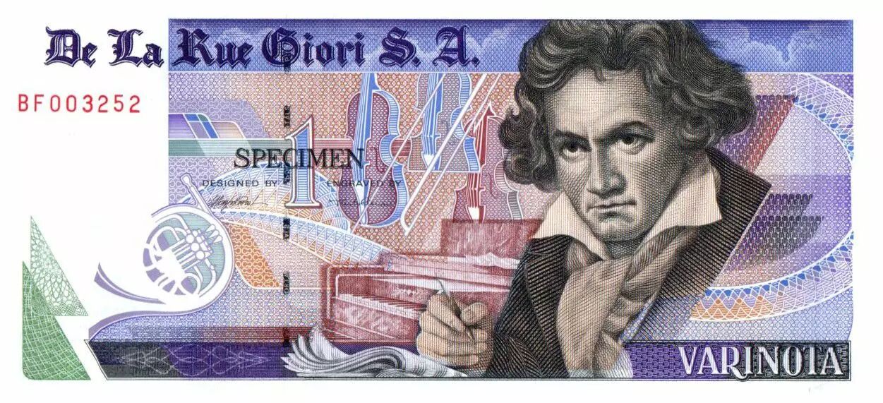 Accueil > Billets du Monde > Billets d'Europe > Suisse - Cantons Suisse > Suisse > Suisse 1 Varinota, Echantillon De la Rue Giori - Beethoven - Numéro de série en rouge