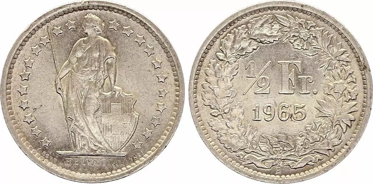 Accueil > Archivage > Suisse 1/2 Franc Helvetia - 1965 - B Bern - Argent